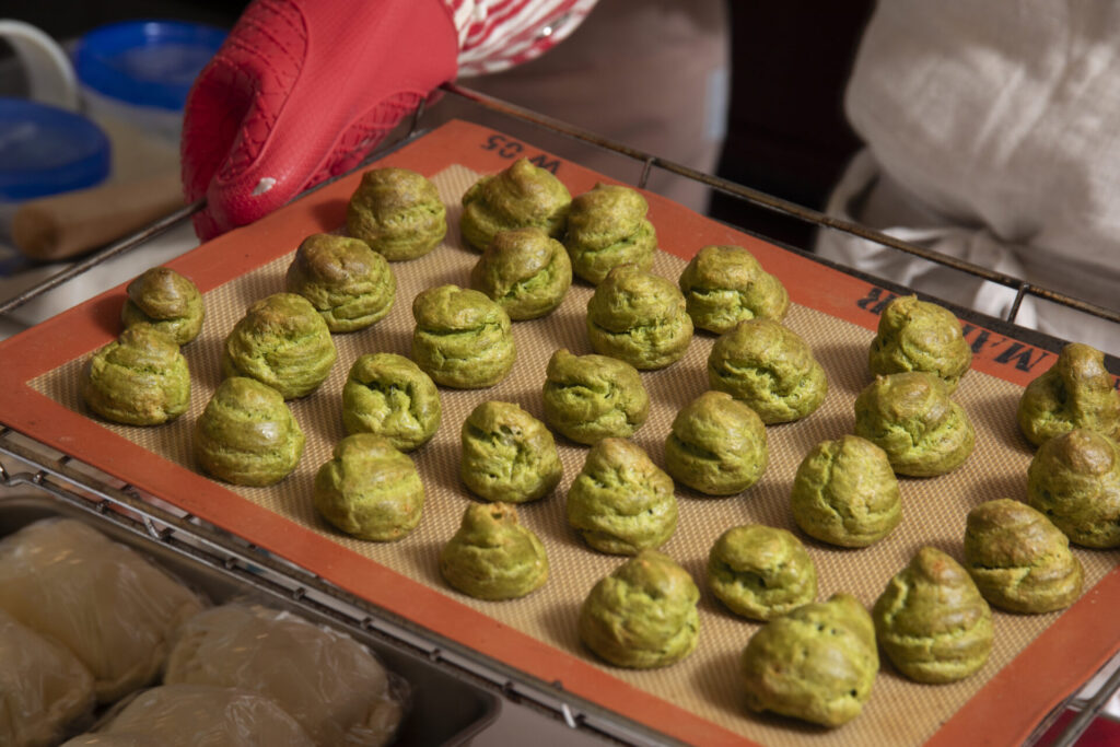 「抹茶は水分をものすごく吸うので、いつものグジェールのレシピ通りではなく、粉と卵の数も調整を重ねました」と大西先生。繊細な生地の配合にも、先生のこだわりが光ります。