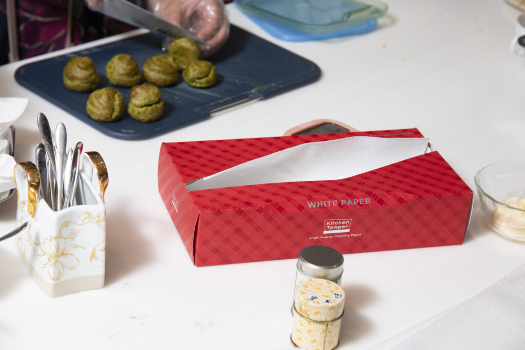また、「お料理をそのままペーパーの上に盛って提供することも最近よくするんですが、食品用のペーパーって衛生的で、しかも絵になるんです。お皿を出さずにそのまま置けるのはすごく便利」と、テーブル演出のアイテムとしての活用方法も教えてくれました。