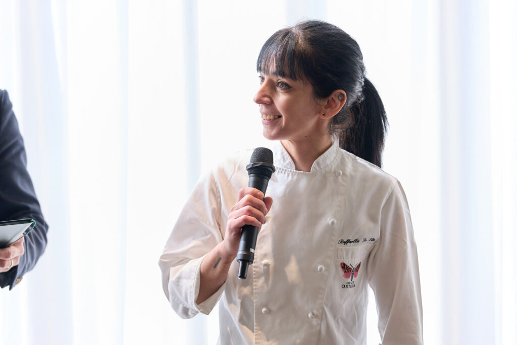 会場は第1弾のメニューフェア参加店の1つである「グッチ オステリア ダ マッシモ・ボットゥーラ」。シェフのラファエラ・デ・ヴィータさんは今回の参加店の中で唯一の外国人シェフでありながらイタリアで日本食のレストランに勤めた経験があり、日本でのキャリアも今年で9年目を迎えるなど、日本の食材や食文化にも造詣が深い。