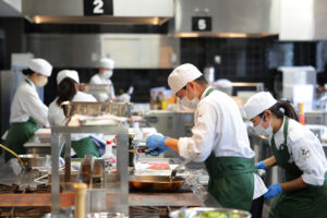 セクションごとに業務は異なるが、クルーズ中は毎日700〜800名のゲストのためにモーニング、ランチ、軽食、ディナーを準備し提供。和・洋食に限らず、多国籍な料理やデザートも用意するため、新たなジャンルに取り組む機会もある。富裕層を中心としたクルーズ客には美食家が多い。料理のおいしさはもちろんのこと、盛り付けの美しさも船旅に感動を与える大切な要素だ。ワンランク上の技量が求められるゆえ、料理人としてのスキルアップにもなるに違いない。