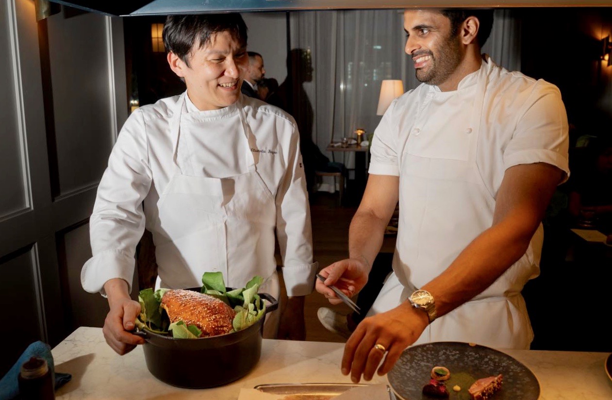 大阪で生まれ、ジョエル・ロブションの弟子としてフランスで修業をしたマンハッタン・ベースの日本人フレンチ・シェフ。そしてインドとロンドンのルーツを持ち、物理学博士でもあり、英国を代表するレストランで研究開発シェフとして長年活躍してきたインド料理シェフ。全く異なるバックグラウンドとスキルを持つトップシェフが、同じ厨房に立つ意義、そして楽しさを、お分かりいただけただろうか。