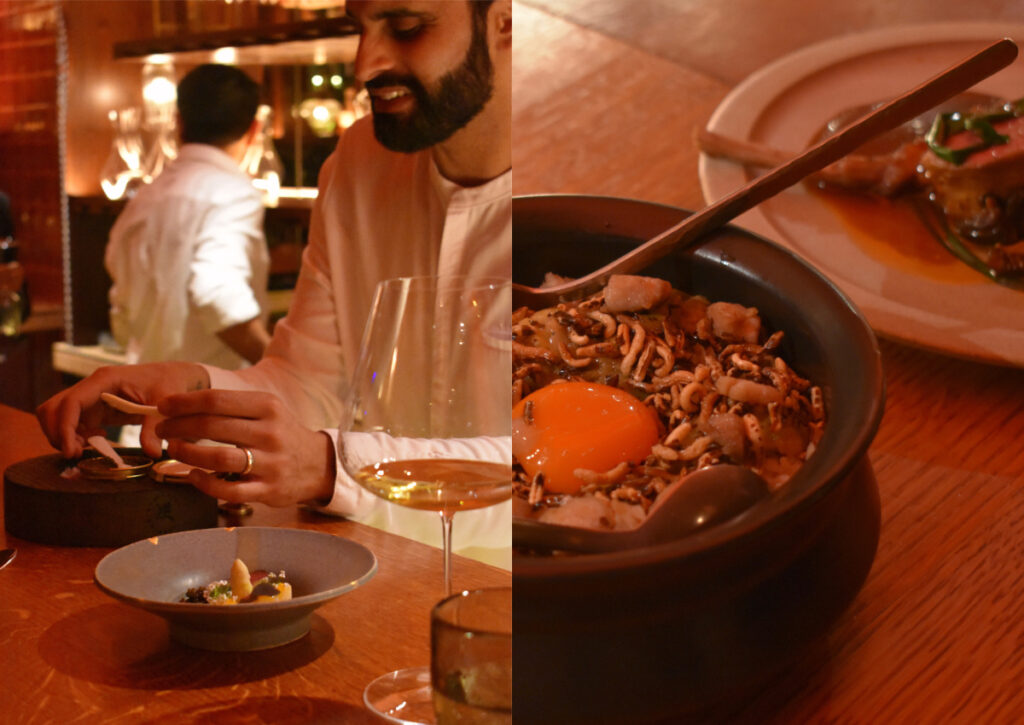 かたやインド料理、かたやフランス料理。互いに深くは知る由もない領域であり、しかもニューヨーク × ロンドンという異国同士のお二人にもかかわらず、コースには完璧なハーモニーが生まれていた。特に序盤の6つのカナッペの応酬は息をもつかせぬ勢いで、このコラボの複雑さと洗練度を見せつけてくれた。