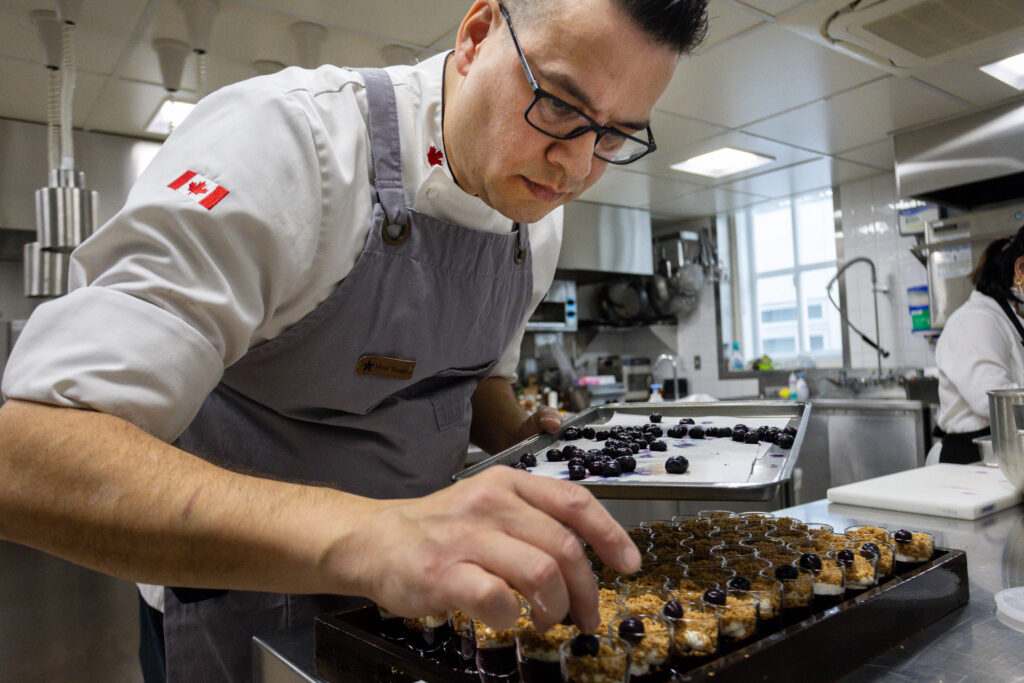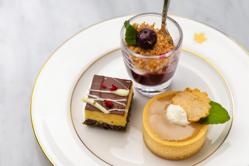 セイボリーに続き、カナダの伝統菓子を取り入れたスイーツも提供された。手がけたのは、セイボリーと同じくクエンティン・グラブスシェフ。カナダ各地で親しまれてきた菓子3品を、今回のイベント用に再構成した。