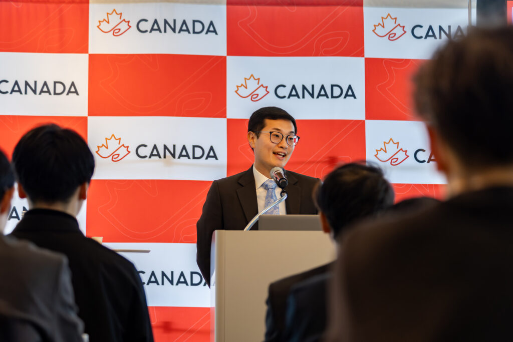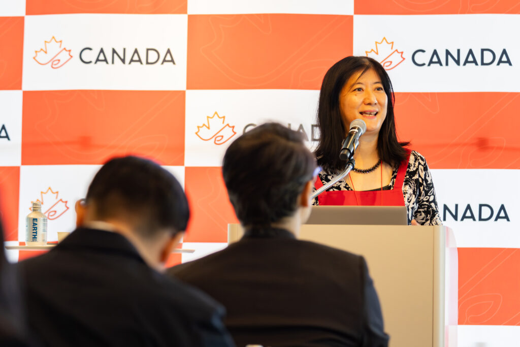 第一部では、在日カナダ大使館商務部 陳(チェン)アレックス参事官(農務・食品)が登壇。カナダの食文化の背景について説明した。