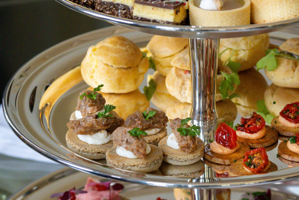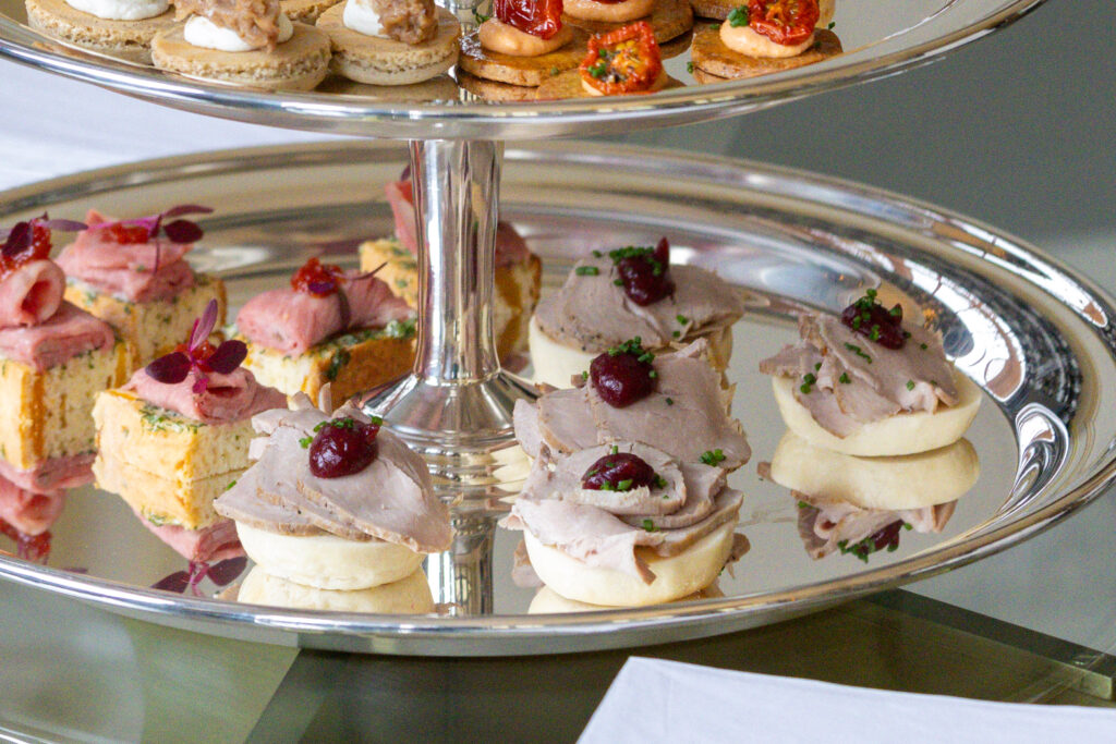英国文化を背景に持つアフタヌーンティーに、カナダの多様な食文化を重ね合わせた今回の試み。ポークやビーフ、ロブスター、メープルシロップといったカナダを代表する食材に加え、ワイルドライスなど先住民文化に由来する食材も取り入れ、多彩な味わいがひとつのティースタンドに集められた。