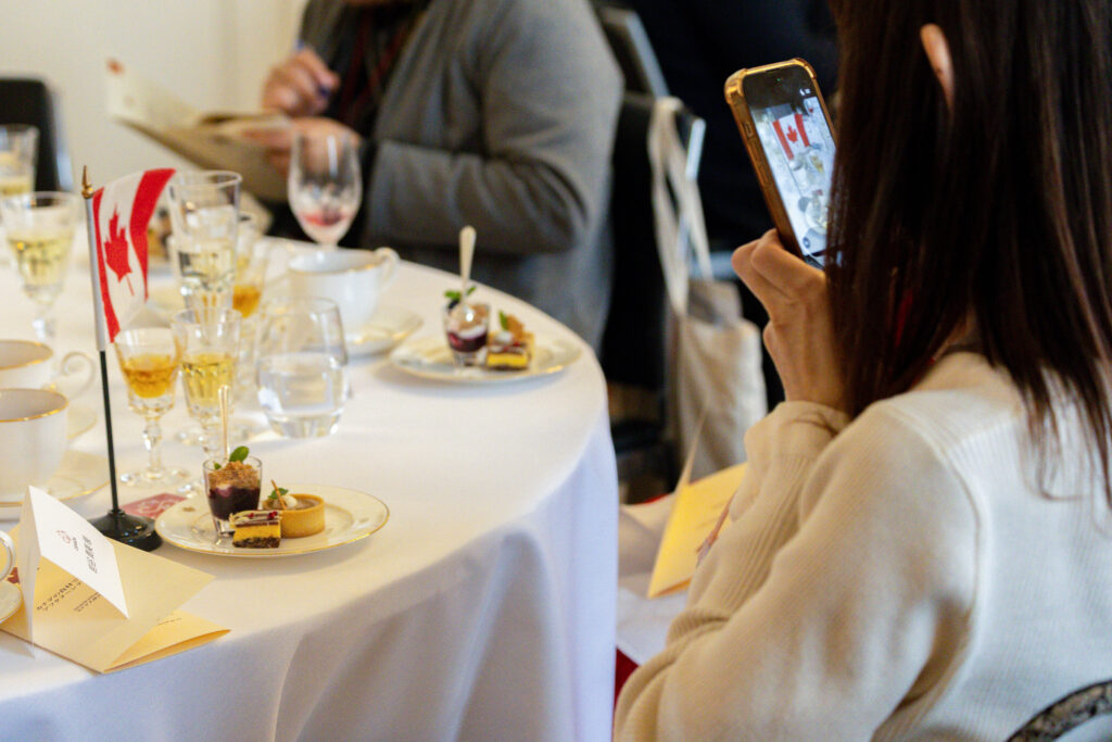 大使公邸に会場を移した第二部では、カナダ産食材・飲料を取り入れたアフタヌーンティーが提供された。