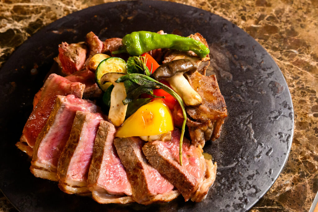 井上 ドライエイジングが特においしかった。ドライエイジング専門業者にも会って、そこではウイスキーを表面にぬってエイジングさせていたので、僕も帰国してからそれを真似て研究した時期があるのですが、どうしてもトリミングが必要になるので、せっかくのいい肉がもったいない。そうした葛藤があり、最近は長期のドライエイジングはやっていません。