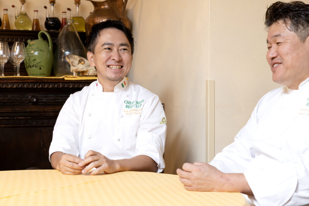 アイリッシュ グラスフェッドビーフの高い品質に魅せられ、レストランで積極的に提供しているシェフたちが集うクラブとして2004年にオランダから始まった「Chefs’ Irish Beef Club」。ヨーロッパ各国で約80名のシェフが属しており、アジアでは初となる日本版として205年6月に設立された。現地視察、フェアの開催、メンバー同士の情報交換など、アイリッシュ グラスフェッドビーフに関する知識や理解を深め、日本の人々にその魅力を伝える役割を担う。現在、メンバーは3名。120席のキャパを持ち、今回の座談会の会場協力をいただいた広尾「ラ・ビスボッチャ」の井上裕基さん、世界初のポルシェ公認レストランである汐留「ザ・モメンタム・バイ・ポルシェ」の林祐司さん、横浜・馬車道で自店を営む「トラットリア・ダ・ケンゾー」の西沢健三さんだ。