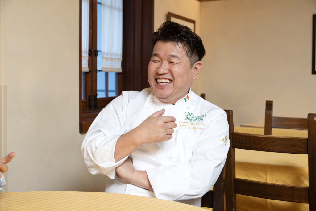 1974年、神奈川県生まれ。24歳の時に渡伊し、トスカーナを中心に4年半修業。帰国後は西麻布「ヴィーノ・デッラ・パーチェ」や馬車道「ラ・テンダロッサ」の料理長を務める。2020年に「トラットリア・ダ・ケンゾー」を開業。