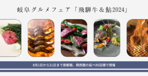 岐阜県が全国に誇るブランド食材、飛騨牛と鮎を飲食店で楽しめる、岐阜グルメフェア「飛騨牛&鮎 2024」が、8月1日から31日まで開催される。参加しているのは首都圏と関西圏の飲食店延べ85店舗。各店舗が考案した、飛騨牛や県 … 続きを読む 岐阜グルメフェア「飛騨牛&鮎 2024」