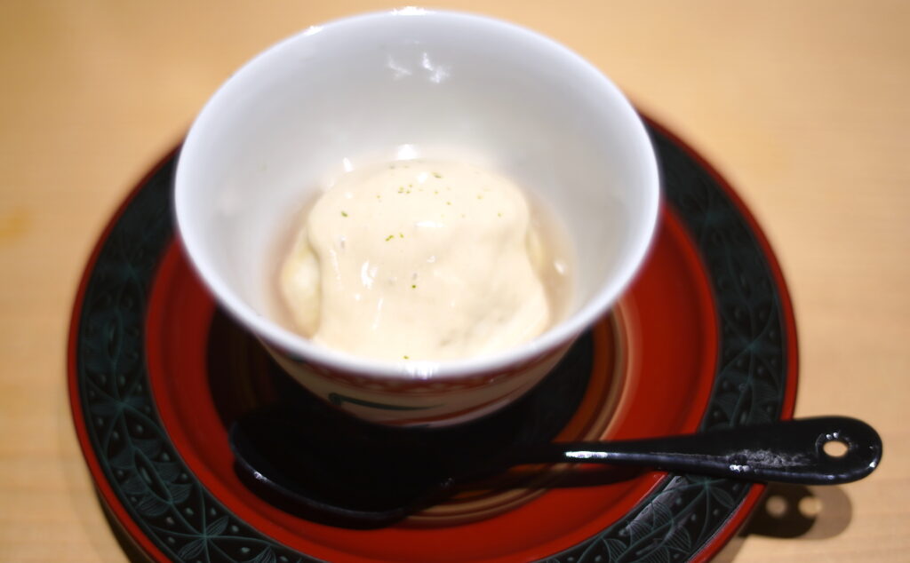 口に運べば、冷たさが唇を通り過ぎ、ふり柚子の香りが来てから、ひんやり、ねっとりと舌にからんでいく。