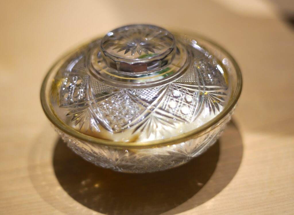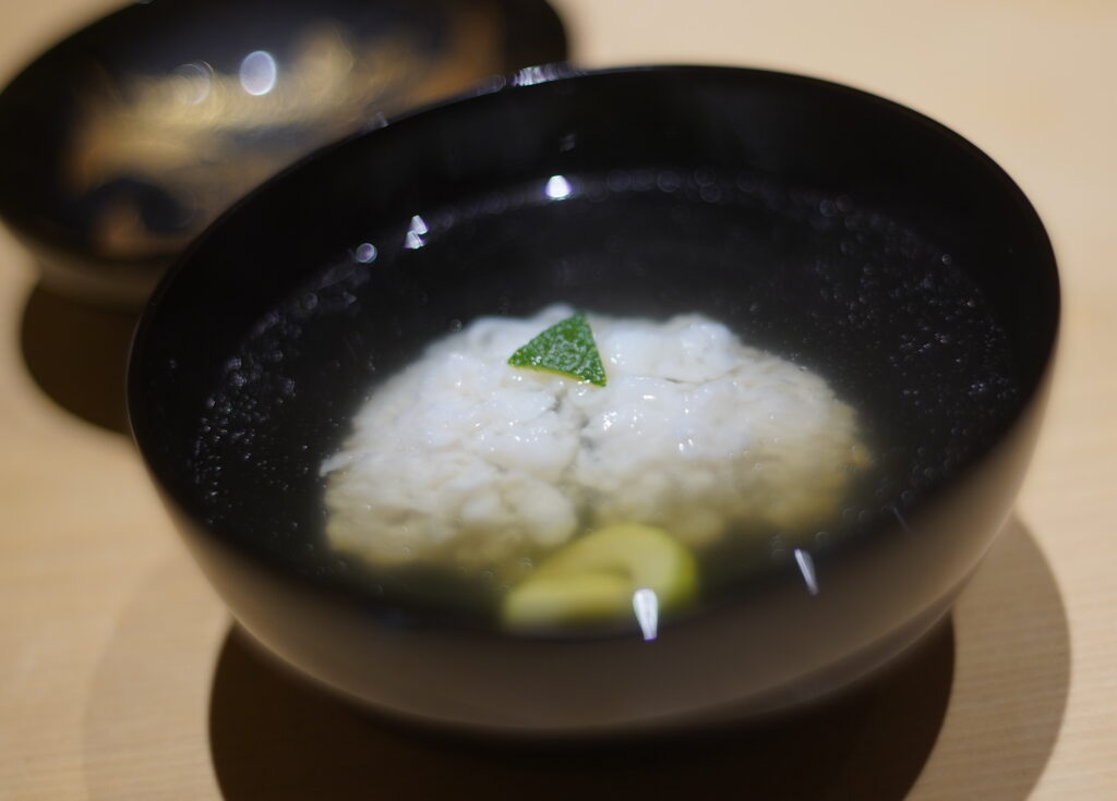 ひんやりとした「胡麻豆腐」から料理は始まり、やがて「牡丹鱧のお椀」で一つのクライマックスに達する。