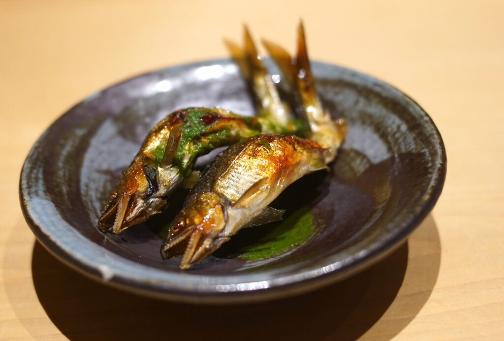 塩焼きの塩分、身のほのかな甘み、蓼酢の辛味と酸味、