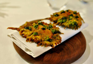 立食形式の懇親会では「木乃婦」の高橋拓児さん、「ミルパ」のウィリー・モンロイさん、「魚三楼」の荒木裕一朗さん、「モトイ」の前田元さん、「てのしま」の林亮平さん、「シーベジタブル」の塚本みなみさんと濱田航さんら料理人が料理を提供した。