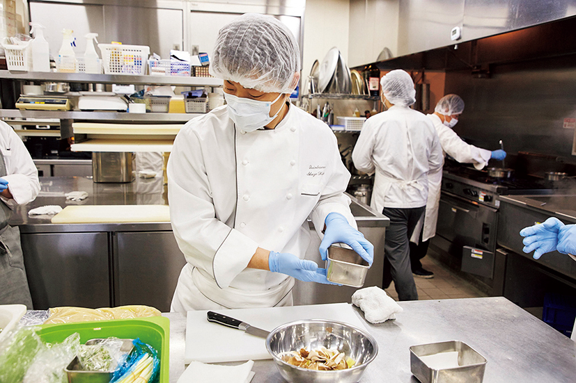 「そのジャンルで革命を起こせるか」などを条件に、企業からの仕事依頼を受けることも。この機内食の仕事では、過去にない熱々の温度を実現。料理の精度を上げるため、選択メニューではなく「カンテサンス」同様のおまかせコースに変えた。羽田発、ニューヨーク、シカゴ、ロサンゼルスほか全9路線で提供。