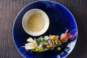 「都会の店で、五島列島や鳥取の魚を出すことに少し違和感のようなものを感じていました。フランスの地方で修業したとき、食材やワインなどすべてがその地域のもので、それを目当てに外国から人が訪れるのを見て、こんなふうに土地の料理で楽しませたいと考えるようになりました。だから、東京や大阪よりも、地方で何を見いだせるのか、地方にはまだまだお宝が眠っているに違いない、と」