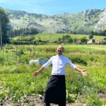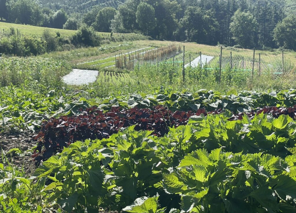 「ここはもともと家畜の放牧地だったんですが、3年ぐらいかけて全部畑にしました。料理で使う野菜の90%以上は、ここで生産できています」