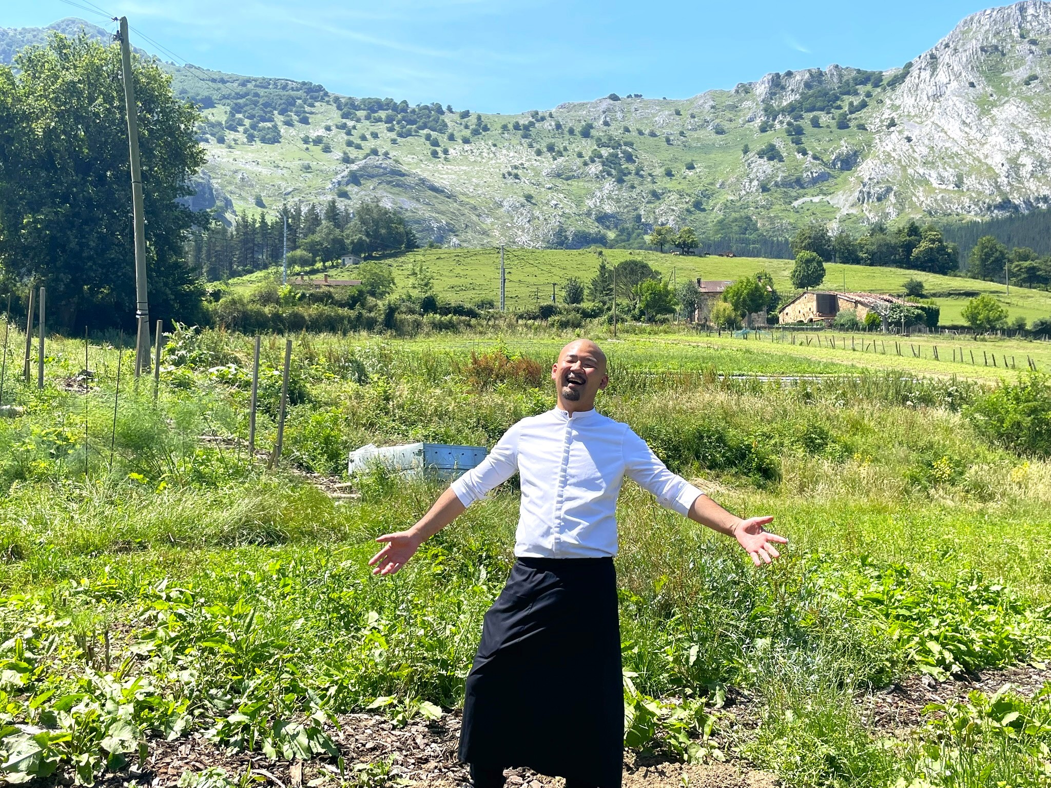 山裾に広がる緑豊かな菜園と、400年前に建てられたという石造りの建物。開店わずか半年でミシュラン一つ星を獲得した前田哲郎シェフの店は、バスク地方のとある村にあった。