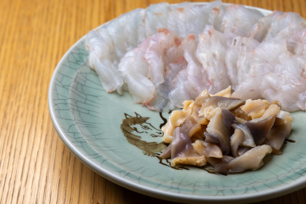 この刺身を盛り付けたのは、浪江を代表する伝統工芸「大堀相馬焼 陶吉郎窯」の皿。震災で多くの窯元が被災したが、陶吉郎窯は「大堀の地でなければ意味がない」という当主の強い思いから再興を果たした。青磁の器に刻まれた二重焼きのひび模様が、食材の透明感をいっそう際立たせている。