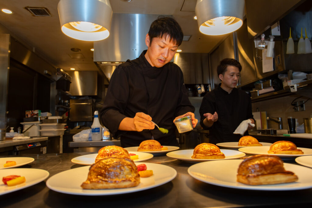 冒頭で味わったヒラメの刺身との対比に驚くとともに、中村シェフはパイ料理の名手としても知られるが、その真骨頂を示すひと皿に会場ではためいきが漏れた。