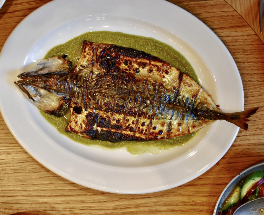 炎使いはもちろん完璧。トルコといえば鯖サンドも有名だと思うが、Noraでは鯖を開いてグリルしたものをシトラスの酸味が爽やかなハーブ・ソースでいただく趣向。デザートではミルフィーユのような大判のバクラヴァに驚かされ、ピスタチオ・クリームの繊細な味わいに思わず目を細めてしまう。