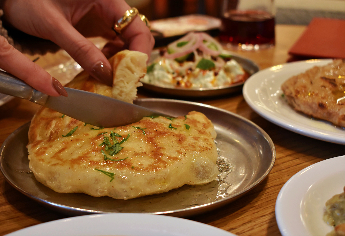 筆者自身はトルコ料理の大ファン。かの国へ旅を重ね、ロンドンのトルコ料理レストランも主要なポイントはおさえているつもりだが、ヨーグルトを混ぜて焼くふかふかの丸いパン、バズラマ(冒頭の写真)はこれまで食べたことのない洗練度。そしてサワードゥを使った珍しい全粒粉のフラットブレッドもかつてない趣向で風味良く仕上がっている。