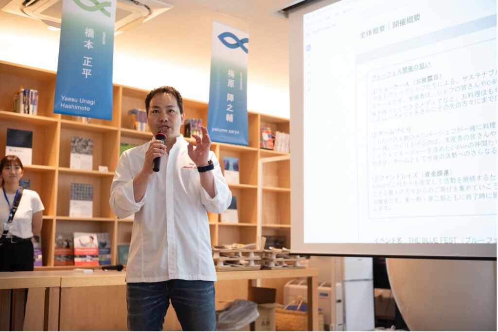 イベントで海のことを話す長谷川大樹氏。© Chefs for the Blue