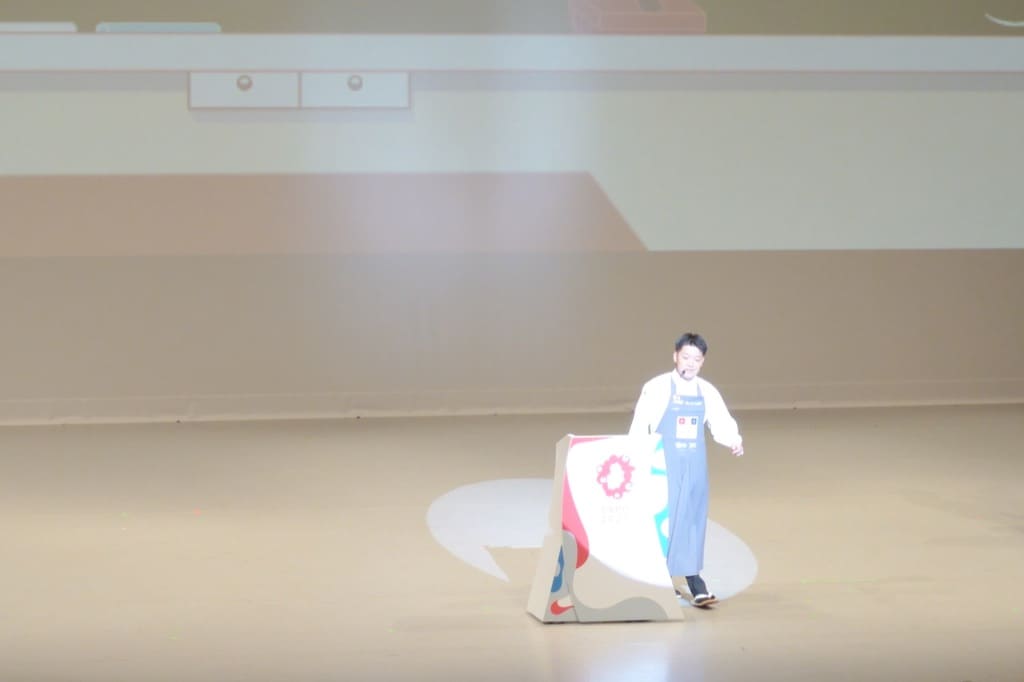 「『食べる』って何だと思う?」。最後のプレゼンター李 廷峻(イ ジョンジュン)氏は、AIとの対話というユニークな形式でプレゼンテーションを始めた。この斬新な設定の中で、「食べるとは過去と未来を今に結ぶ行為だ」という哲学的なテーマが、軽妙な一人芝居を通してエンターテイメントとして構築されていく。