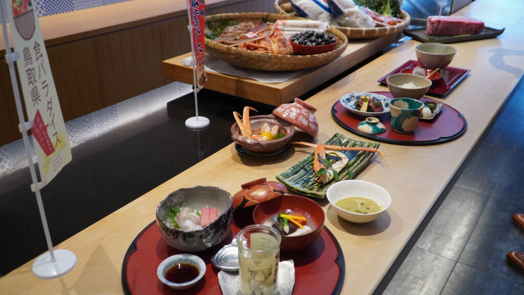 トップセールス終了後には、メディア向け試食会が開催され、フェア期間中に「川梅」で提供されるお料理を試食。松葉がにや鳥取和牛をはじめ、ねばりっこ(長芋)、きらきらみどり(ブロッコリー)、とっておき苺など、鳥取県の多彩な食材を使用したお料理が紹介された。