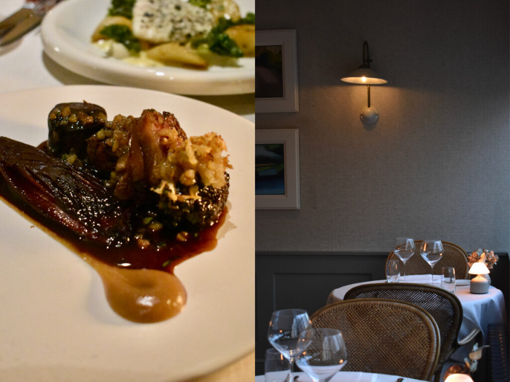 メイン・コースにはぜひ、年間を通して登場するサウス・ダウンズ産の鹿肉を。サウス・ダウンズ国立公園との連携により、鹿の生息数管理の一環として鹿肉を確保しており、新鮮な野生肉をさまざまな方法で堪能できるのがいい。この日もランプ、肩、バラなどの各部位に加えて肉団子も添えられ、チコリの甘辛ソテー、洋梨のプリザーブが鹿肉特有の濃厚なミネラルの風味を引き立てていたのはさすがだ。