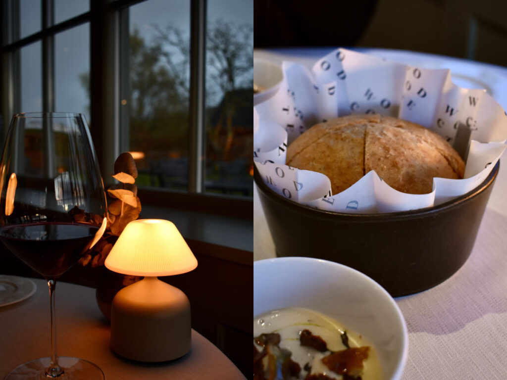 渋めのバーにはもちろんタップ・ビールはない。代わりにオーナーの名を冠したジン・ベースのカクテルや抹茶マティーニ、近隣ヴィンヤード「The Weyborne Estate ウェイボーン・エステート」の明るい黄金色のスパークリング・ワインなど地元に根ざしたドリンクが並ぶ。鹿肉用にヴィンテージのボルドーを取り揃えることも忘れない。